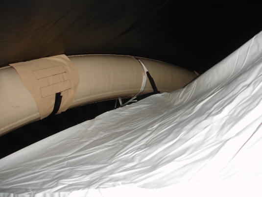 To erect the AirBeam, the shelter is laid out and staked to the ground at just four anchor positions. The AirBeams are then inflated simultaneously