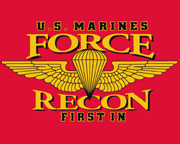Marine Silver & Gold Emblem on red shirt Marine Recon