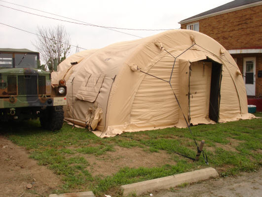 Air-Supported TEMPER Type XXXVIII provides an interior clear span of 20 ft (6.1 m) wide with a personnel door each end, two (2) windows on one side, and two (2) TRICON boot walls on the opposite side. This shelter is designed for connection to Type II TRICON containerized systems. Shelter includes cover with integral floor, one (1) personnel door/TEMPER vestibule adapter end wall, one (1) ISO (end) end wall, thermal liner and plenum, three (3) air beams, inflation assembly, bracing and transport cover, and two (2) TEMPER vestibules. |