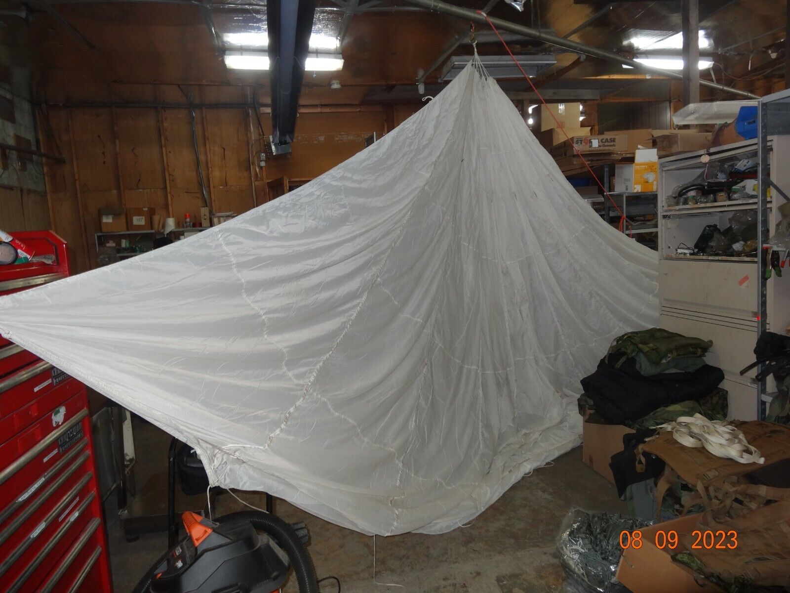 Nice French Army 28' Diameter White Parachute Solid Circular Canopy $200.00