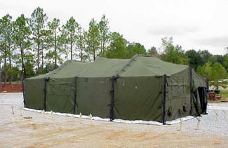 Base-X Model 305 provides an interior clear span of 18’ wide with 6 entry and egress points. This shelter will house between 12-14 personnel. 18' x 25' DIMENSIONS